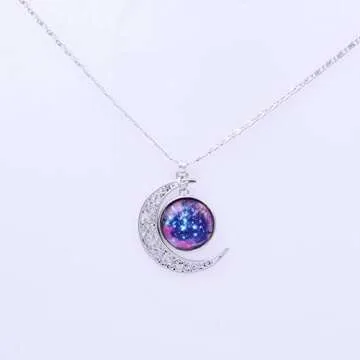 FANSING Galaxy Pendant Necklaces for Women Crescent Moon Nebula Necklace Universe Space Jewelry