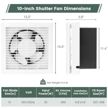 Fanspex 10" Shutter Exhaust Fan, 490CFM Window or Wall Mount Ventilation Fan for Greenhouse, Attic, Garage, Bathroom
