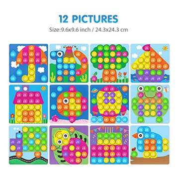 Fansteck Button Art Toy for Toddlers, Color Matching Early Learning Educational Mosaic Pegboard, Safe Nontoxic ABS Plastic Premium Material, 12 Pictures and 46 Buttons,with a Bag Easy to Storage