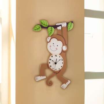 Show moreIntroducing the Fantasy Fields Sunny Safari Nursery Clock, a delightful addition to any child's space! Designed with a playful jungle theme, this wooden wall clock brings a touch of whimsy into your child’s room, making learning to tell time an engaging experience. Featuring a cheeky monkey swinging joyfully on a tree limb, this clock isn’t just a functional piece; it’s a charming piece of decor that elevates any environment. With its vibrant colors and adorable design, it serves both as a decorative item and a crucial learning tool for your little ones.