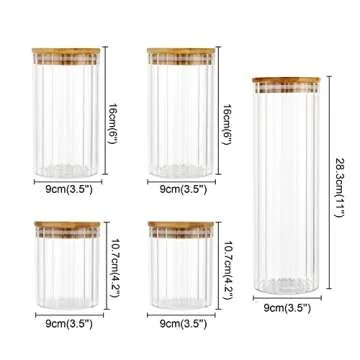 Show moreElevate your kitchen decor with the FANTESTICRYAN Glass Storage Jars Set of 5, crafted from high-quality Borosilicate Glass, ensuring durability and a sleek aesthetic. These jars are not only stylish but also practical—lead-free and BPA-safe, they withstand high temperatures and condensation. Designed with a unique vintage look, they seamlessly blend elegance with functionality, making them the perfect accent for any modern kitchen. The innovative feature of having the design on the inside of the glass allows you to stick labels on the outside without dealing with unsightly wrinkles.