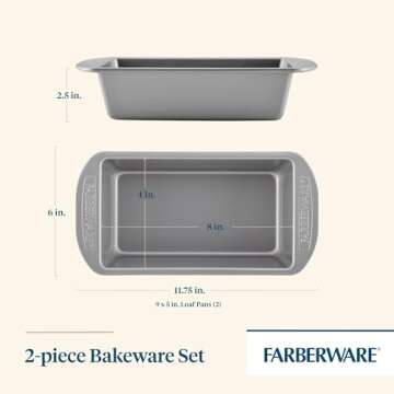 Farberware Bakeware Meatloaf/Nonstick Baking Loaf Pan Set, Two 9-Inch x 5-Inch, Gray
