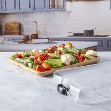 The clear SAN plastic locking lid adds a layer of functionality, allowing you to transport your food displays with confidence while keeping everything fresh and neatly organized. Whether you're heading to a picnic, hosting a party, or simply preparing a delightful meal at home, this board provides the ultimate solution for all your needs. The generous dimensions of 12x16 inches provide ample space to accommodate a variety of foods, from decadent cheeses and meats to fresh fruits and veggies. Cleanup is a breeze, ensuring you can enjoy your gatherings without the hassle.