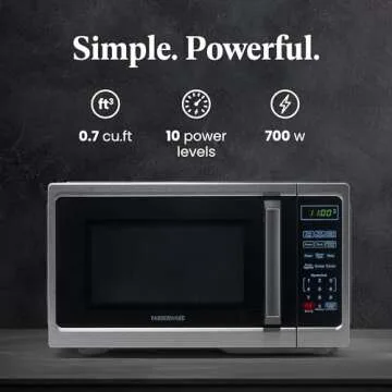 Show more Discover the perfect kitchen companion with the powerful Farberware Microwave! With an output of 900 watts, this convenient microwave guarantees quick and easy meal preparation for busy lifestyles. Its sleek design and compact size of 0.9 cu ft make it an ideal fit for small kitchens or office spaces, ensuring you can enjoy full-sized cooking in a compact form. Ten power levels and six one-touch cooking options allow you to customize your culinary creations, whether you're heating up leftovers or creating delicious microwave popcorn.