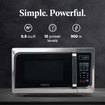 Show more If you're looking for a compact microwave that delivers on both performance and style, look no further than the Farberware FM09SSE Classic Countertop Microwave Oven. With a power output of 900 watts, this sleek microwave is designed to help you prepare quick and delicious meals in no time. Its elegant stainless steel finish not only looks great in any kitchen setting but also fits seamlessly into tight spaces, making it ideal for small apartments, offices, or even RVs. Whether you're reheating leftovers or defrosting meat, this microwave has you covered with its variety of settings and features.