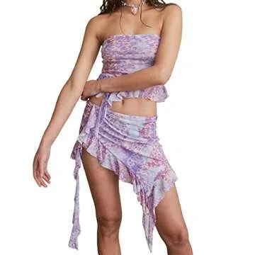 Faretumiya Women Two Piece Outfit Cami Top Skirt Set Sleeveless Bodycon 2 Piece Tube Top Mini Skirt Y2k Matching Set Suiting(Purple,Small)