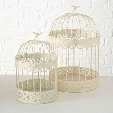 Farmers Market White Wire Bird Cages, Set of 2, Decorative, Table Top Centerpieces, for Florals, Candles and More, Metal, Handmade, Rustic Vintage Style, 11.75 and 15 Inches Tall
