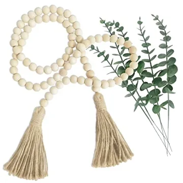 Compared to similar products on the market, the Farmhouse Beads Garland offers an exceptional blend of quality and aesthetic appeal. Many competitors use artificial materials that lack the realism and detail our eucalyptus provides. Additionally, our unique design combines both decorative elements and meaningful symbolism, making it a more appealing choice for gifts and home decoration than other garlands which focus primarily on aesthetics.