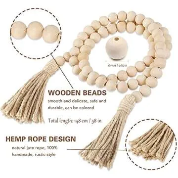 Show moreTransform your space into a rustic paradise with the **Farmhouse Beads CXCC 29" Wooden Beads Garland with Tassels**. This charming décor piece, measuring an impressive total length of 58 inches and featuring a bead diameter of 0.63 inches, offers versatility and style for a variety of settings. Handcrafted from **natural wood beads** and adorned with soft jute tassels, this garland serves as the perfect finishing touch to your home, whether for indoor or outdoor use. Its delightful blend of farmhouse and boho aesthetics makes it a staple in enhancing any decor theme, from the vintage to the country chic.