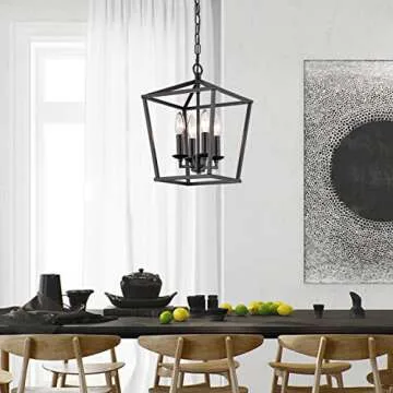 Farmhouse Black Pendant Light, Retro 4-Lights Candle Style Chandelier, Vintage Caged Pendant Lighting Fixture for Kitchen Island, Dining Room, Bedroom, Living Room, Hallway, Entry
