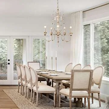 Farmhouse Chandelier for Dining Room, 5-Light Wood Chandelier, French Country Lighting with Bead Strings, 21.5" L x 30" H