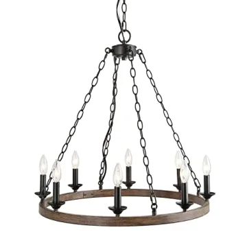 Rustic Wagon Wheel Chandelier - 8-Light Farmhouse Fixture for Dining & Living Spaces