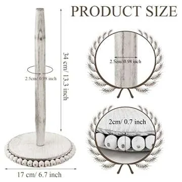 Show moreTransform your kitchen or dining area with our beautifully crafted Farmhouse Paper Towel Holder. Made from premium beech wood, this paper towel stand combines rustic charm with excellent durability. The natural grain of the wood enhances its aesthetic appeal, ensuring it not only serves a practical purpose but also complements your home decor beautifully. This paper towel holder stands at a height of 34 cm (13.3 inches) and has a base diameter of 17 cm (6.7 inches), making it the perfect size to accommodate most standard paper towel rolls. With a design that reflects nature's elegance, it adds a touch of warmth to any space.