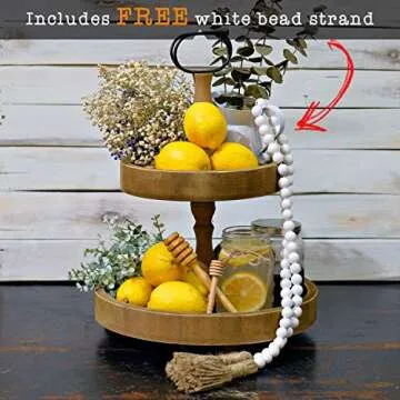 Farmhouse Round Tier Tray with Beads - 2 Tier Home Decor for Kitchen & Coffee Tables