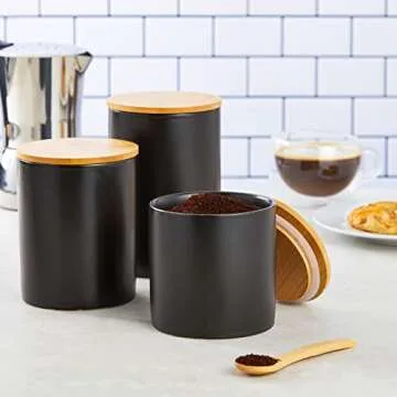 Farmlyn Creek Set of 3 Matte Black Kitchen Canisters with Airtight Bamboo Lids