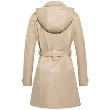 What sets this trench coat apart is its elegant classic style, featuring a timeless double-breasted design with epaulettes and a sharp lapel collar. Not only does it preserve classic elements, but it also enhances practicality by incorporating a removable hood, adding versatility for varying weather conditions. Whether it’s windy or rainy, this stylish trench coat offers full-body protection while making a bold fashion statement.