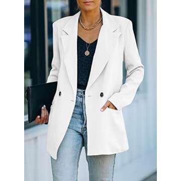 Show more Elevate your professional wardrobe with the FARYSAYS Blazer Jackets for Women, a timeless addition that combines style with functionality. Crafted from a high-quality blend of 75% polyester and 25% other materials, this lightweight blazer offers a soft, breathable experience that keeps you comfortable from morning meetings to after-work events. Its sleek, draped open front design and notch lapel collar exude sophistication, making it a perfect layering piece for any occasion. With a full lining and double-breasted front, this blazer not only ensures style but also promises longevity with careful wear.