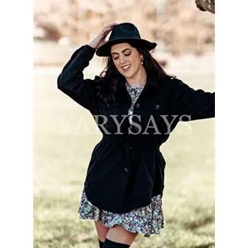 FARYSAYS Women Shacket Jacket Fashion 2022 Fall Winter Business Casual Button Down Shirt Flannel Trench Coat Black Large