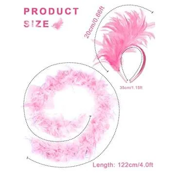 Show more Step into the glitz and glamour of the roaring 1920s with our stunning Fascinator Feather Headband and Feather Boa set, designed exclusively for your tea parties, cocktail nights, or wedding celebrations. The delicate pink hues of the feather headband beautifully complement any outfit while the boa adds a sophisticated touch that makes you feel like a star from a classic film. Made with high-quality materials, this exquisite headpiece not only captures the essence of the 1920s but also ensures comfort for all-day wear. Its lightweight and adjustable design make it a perfect accessory, whether you’re dancing the night away or sipping tea at a charming garden party.