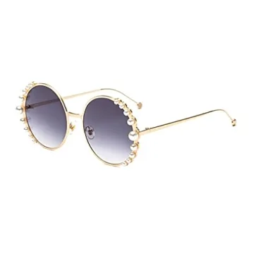 FASGION Pearl Sunglasses Women Fashion Metal Frame Round Sun Glasses Summer Trend Shading Mirror UV400 (Color : Gold gray, Size : Talla Única)