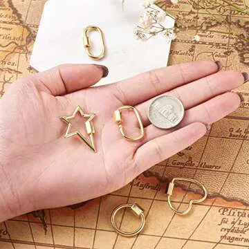 Fashewelry 5Pcs Mixed Screw Keychain Carabiner Lock Clasps Real 18K Gold Plated Screw Locking Hook Closure Buckle for Necklace Bracelet Making Mini Dangling Charms Pendant Keyrings Handbag Decor