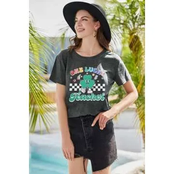 FASHGL One Lucky Teacher Shirt Women St. Patrick's Day Tshirt Lucky Clover Teacher Shirt Shamrock Teacher Gift Tee Tops