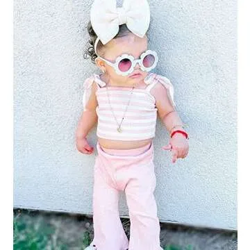 Show moreDress your little one in adorable style with the Fashion 2Pcs Infant Baby Girl Sleeveless Knit Striped Crop Top Flared Pants Summer Clothes Set. Perfectly tailored for comfort and cuteness, this outfit features adjustable spaghetti straps and is crafted from high-quality cotton fabric, ensuring your baby girl stays cool and comfortable during those warm summer days. The striped knitted ribbed crop top pairs perfectly with the chic solid color bell-bottomed pants, creating a stunning ensemble that's as stylish as it is practical. Ideal for babies aged 0-6 months, this set brings both simplicity and elegance to your infant's wardrobe.