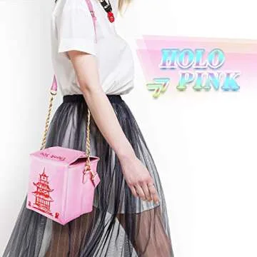 Fashion Crossbody Shoulder Bag, i5 Chinese Takeout Box Purse with Comfortable Chain Strap (holo-pink)