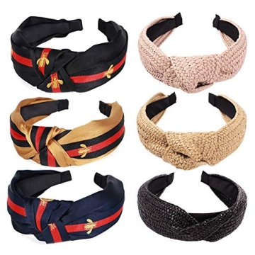 Fashion Headbands For Women, Bow Knotted Vintage Wide Cut Black Top Cross Head Bands For Girls Hair Accessories, , Christmas Gifts for Women 6Pack