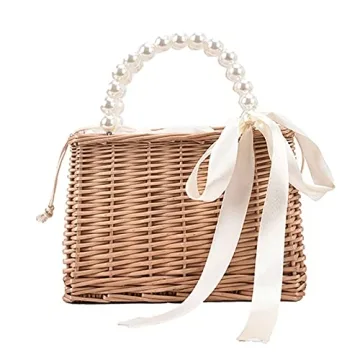 Fashion Straw Bags for Women Beach Rattan Woven Tote Handbags Ladies Summer Top-handle Bags Wicker Purse with Pearl Ornaments (B)