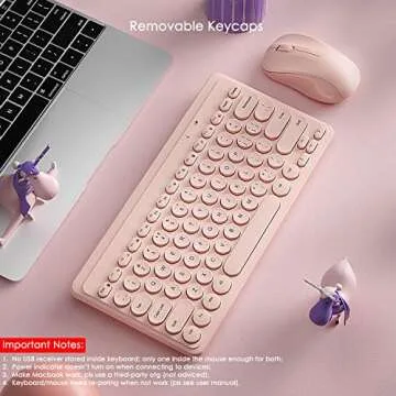 Show more Introducing the Fashion Wireless Keyboard and Mouse Combo, an elegant blend of style and utility designed to elevate your workspace. Encapsulated in a charming Salmon Pink hue, this modern keyboard sports 79 vintage typewriter-style round keycaps that not only provide a nostalgic touch but also enhance your typing experience with their glossy finish and smooth edges. Enjoy a workspace that's not just functional but also a reflection of your chic taste. Plus, its ultra-slim design ensures you have a clutter-free desk while being incredibly portable, making it ideal for both office and home environments.