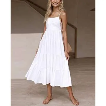 Show moreStep into a world of style and comfort with the Fashionme Women Boho Smocked Dress, the perfect blend of chic and ease that redefines your summer wardrobe. This exquisite dress combines a smocked bodice with a delightful tiered babydoll fit, allowing for flattering movement and undeniable comfort. Made with a premium lightweight blend of polyester and cotton, it breathes effortlessly, ensuring you remain cool even on the warmest summer days. Its elegant backless cutout design paired with the adjustable spaghetti straps offers a stunning silhouette that can be customized for a perfect fit every time you wear it.