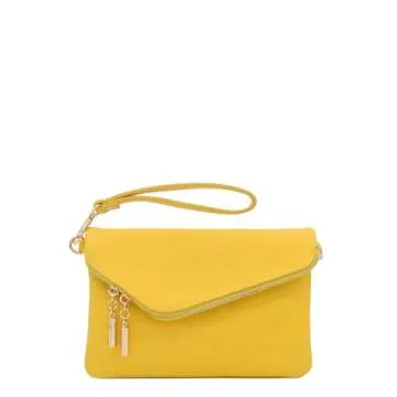 FashionPuzzle Envelope Wristlet Clutch Crossbody Bag with Chain Strap (Yellow) One Size