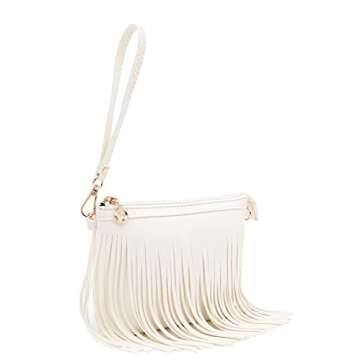 FashionPuzzle Small Fringe Crossbody Bag with Wrist Strap (White)