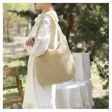 FASHLANLIKA Beach Bag Straw Purses for Women Summer Woven Beach Tote Bag with Straw Clutch (Beige)