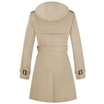 FASRYKOC Women's Windproof Double-Breasted Trench Coat - Stylish, Water-Repellent Raincoat with Removable Hood in Large Khaki