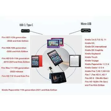 Show moreThe Ultimate Fast Charger is your go-to power solution designed specifically to cater to all your Fire tablet needs! This state-of-the-art charger features a 6-foot long USB Type-C and Micro USB cable, ensuring you can easily charge your device from almost anywhere—be it the comfort of your living room, your office, or while on the go in your car. The charger is compatible with a vast range of devices including Fire HD 6, 7, 8, 10, Fire Max 11-13th generation, all Kids Edition tablets, and Kindle e-readers including the Paperwhite and Oasis. With this versatile charger, say goodbye to the hassle of having multiple chargers lying around and streamline your charging experience with just one reliable solution!