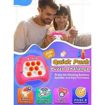 Show more Introducing the Fast Push Bubble Up Fidget Toy from Careenoah, a revolutionary twist on traditional pop bubble toys that captivates and challenges kids and adults alike. This electronic game console is not just designed for play but is enriched with exquisite LED lights and lively game audio, creating an engaging atmosphere that makes it the perfect companion for fun wherever you are. Whether it’s a long car ride or family time at home, the Bubble-Up Fidget Toy is crafted to keep everyone entertained while enhancing essential skills like focus, concentration, and hand-eye coordination.
