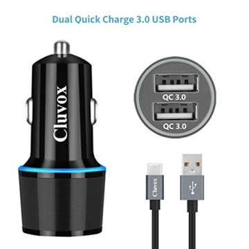 Fast USB Car Charger for Samsung Galaxy A55/A54/A53/A50/A15/A14/S25/S24/S23/S22/S21 Plus/Ultra/S10/S9/S8/Note 20/A10S/A21/A31/A51 Quick Charge 3.0 Dual USB Rapid Car Charger with Type C Cable 3.3ft