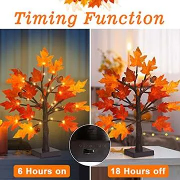 Show moreIntroducing the FastDeng 1.5ft Lighted Maple Tree, your go-to solution for creating a warm and inviting autumn atmosphere right in your home! This beautifully crafted artificial fall tree features an elegantly designed brown trunk adorned with 36 vibrant maple leaves ranging from rich orange to bright red, along with charming acorns delicately placed on its branches. At 1.5 feet tall with a compact 3.94" x 3.94" base, it fits perfectly on any tabletop, making it an eye-catching centerpiece for your fall and Thanksgiving decorations.