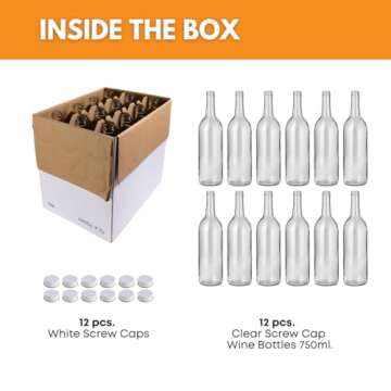 Show moreIntroducing the perfect solution for your homemade beverage creations: the FastRack 750 ml Clear Screw Cap Bottles Set. Whether you're crafting delicious Coquito for the holidays or preparing unique drinks to share with friends, these bottles provide the ideal vessel for your concoctions. This set includes 12 clear bottles with 12 durable 28 mm metal screw caps, ensuring that your drinks stay fresh and securely sealed.