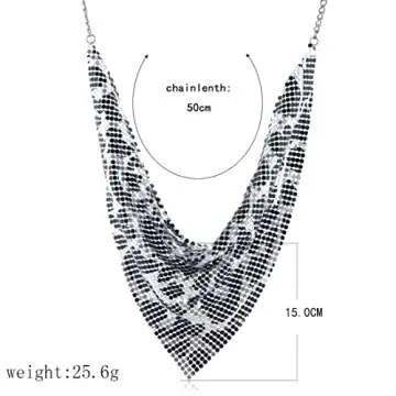 Show moreIntroducing the exquisite FASUND Women Glitter Thick Metal Sequins Tassel Choker Necklace, an exceptional statement piece designed to enhance any outfit effortlessly. Crafted with high-quality durable alloy and adorned with dazzling metal sequins, this necklace is not only a visual delight but also a symbol of elegance. The chain measures a comfortable 50cm (19.7 inches), while the eye-catching pendant boasts a dramatic 15cm (5.9 inches), ensuring it stands out without the burden of weight. Surprisingly lightweight at just 25.6g (0.9oz), this necklace is perfect for those who wish to make a statement with ease.