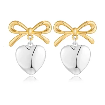 Show moreIndulge in the captivating charm of the FAUTHENTICUTE Two-toned Heart Earrings, a stunning accessory that truly represents elegance and grace. These exquisite dangle earrings beautifully intertwine two distinct tones - gold and silver. Featuring a delightful gold bow ribbon stud seamlessly complemented by a shimmering silver heart dangle, these earrings are the perfect statement piece for any outfit. Measuring at 1/2.6cm in length and 0.83/2.1cm in width, they strike the ideal balance between being eye-catching yet not overwhelming, enhancing your natural beauty without overpowering your look. With a lightweight design of just 0.16oz/pc, these earrings provide comfortable all-day wear, allowing you to flaunt them on any occasion.