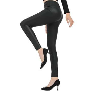 Faux Leather Leggings for Women Tummy Control Stretch High Waist Pleather Pants Black