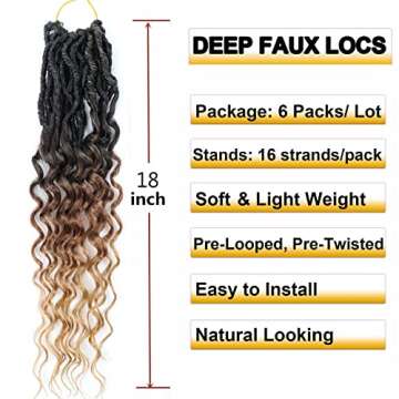 Introducing the ultimate solution for effortlessly glamorous hair - our Faux Locs Crochet Hair, designed for women who crave style versatility without sacrificing comfort. Measuring a delightful 18 inches, these heavyweight, soft locs are made from high-quality synthetic materials that maintain their luster and vibrant colors for a stunning look. Each pack contains a generous six bundles that make it a breeze to create full, luscious hairstyles. Choose from the chic and modern...