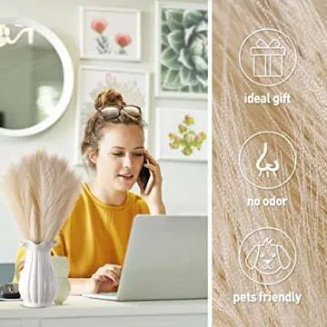 Faux Pampas Grass Short, 7-Pcs 17''/1.5FT 10 Branches, Cream Beige, Short Pampas Grass for Small Vase Table Decor, Boho Farmhouse Rustic, Gold Fluffy Faux Mini Pampas Grass, Artificial Pampas Flowers