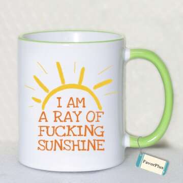 Introducing the FavorPlus Best Gift Mug - I Am A Ray Of Fucking Sunshine, the perfect blend of style, functionality, and motivation! Designed for those who appreciate both humor and inspiration, this 11-ounce white ceramic mug features a vibrant green design that captures attention. The artistic dual-sided print serves uplifting quotes that remind you to bring your best self to each day, whether you're enjoying coffee, tea, or any hot beverage of your choice. Its sleek dimensions of 3.74...