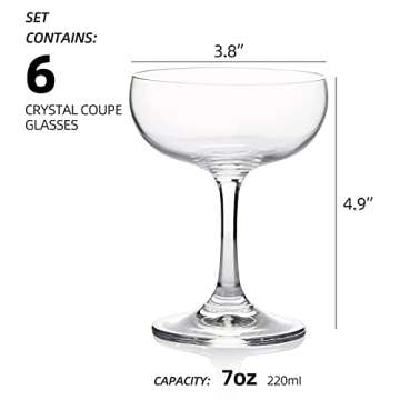 FAWLES Crystal Coupe Glasses, Set of 6, 7 Ounce(220ml), Elegant Short Stem Design, Clear Cocktail Glasses Sets Perfect for Drinking Champagne, Sweet Wine, etc.
