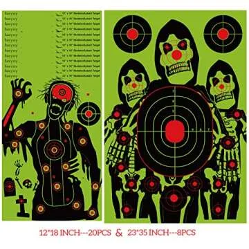 Show moreIntroducing the Faxyxy Zombie Joker Shooting Targets: your ultimate companion for a fun and effective shooting practice! With a unique twist on traditional target design, these targets feature a captivating zombie pattern that adds excitement to your shooting routine. Not only do they look great, but they are also designed with functionality in mind. The bright red bullet holes instantly indicate your shooting accuracy, making them perfect for both novice and experienced shooters alike. Each pack includes a thoughtful selection of 27 sheets, combining 20 sheets of 12 x 18 inches and 7 sheets of 23 x 35 inches, suitable for a variety of firearms, including BB guns, airsoft, pellet guns, shotguns, bows, and more.