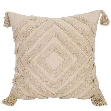 Show moreIntroducing the Faycole Morocco Tufted Throw Pillow Case – a stunning addition to your home décor that combines style, luxury, and functionality. This 18 x 18 inch pillow cover is crafted from 100% premium cotton fabric, known for its thickness, durability, and skin-friendly properties. Its unique 3D tufted design adds a visually appealing texture while maintaining a soft feel. The beautiful beige color exudes an aura of elegance and sophistication, making it an ideal match for a variety of interiors. The tassel accents on all four corners elevate its charm, ensuring that this pillow case stands out in any setting.